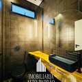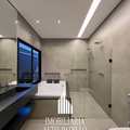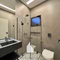 Um imóvel moderno / contemporâneo com design minimalista e uso de materiais inovadores, como vidro, aço e concreto. E conta com um lavabo de cair o queixo 😱